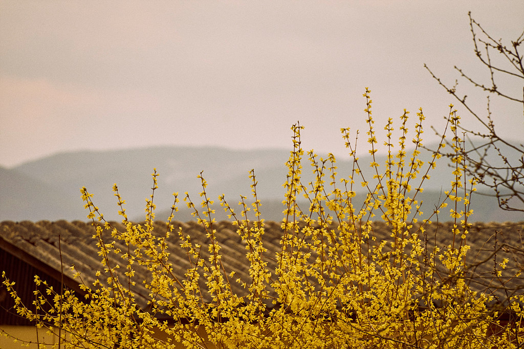 담장 밑에 개나리꽃이 활짝 피어 있는 꿈