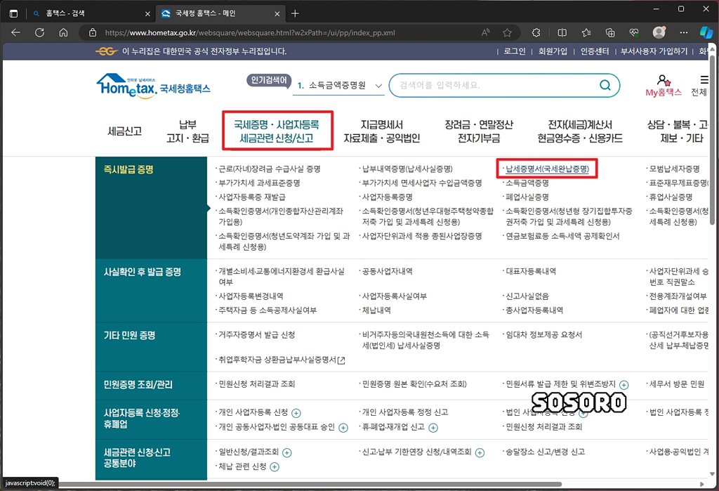 안녕하세요. 소소로입니다. 이번 포스팅은 국세 납세증명서 인터넷(온라인) 조회 및 발급 방법에 대해서 알아보려고 합니다.