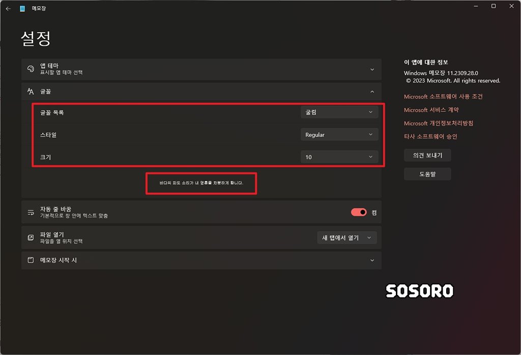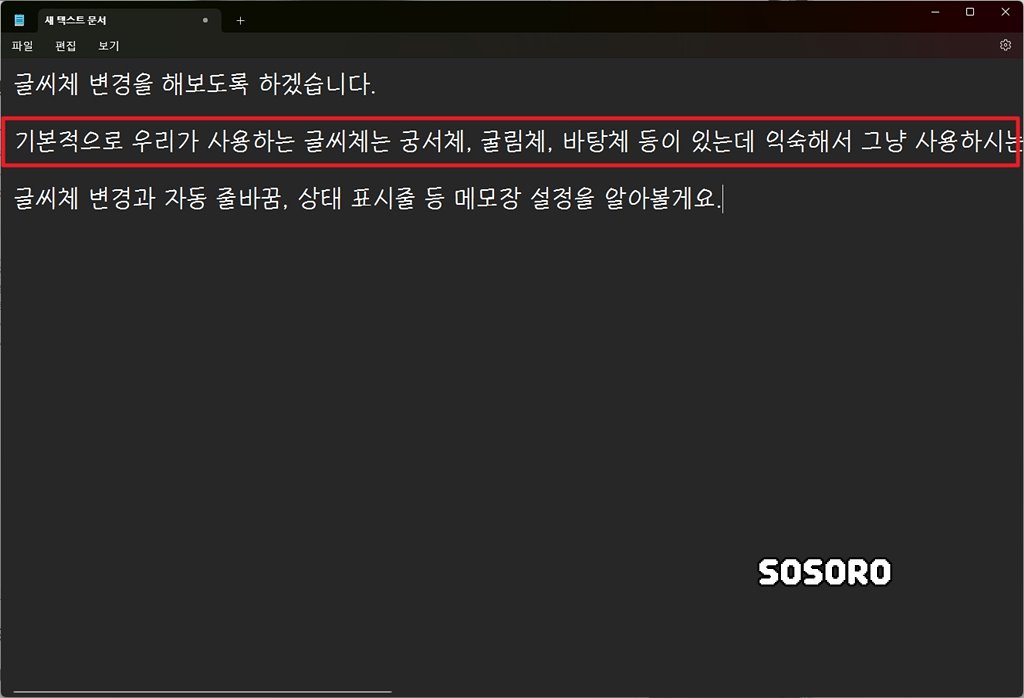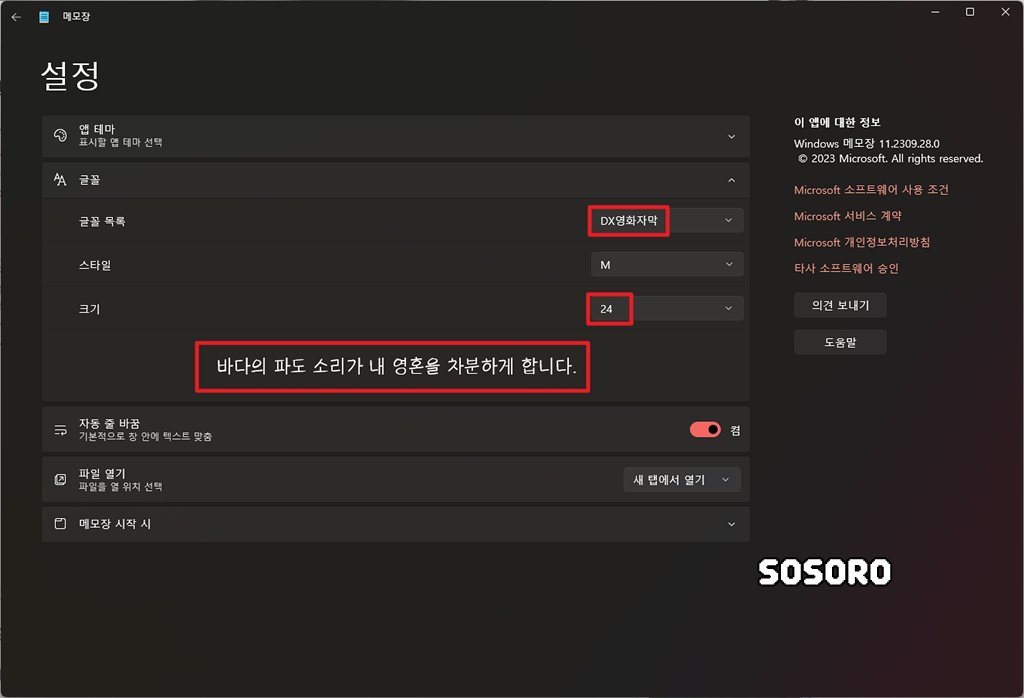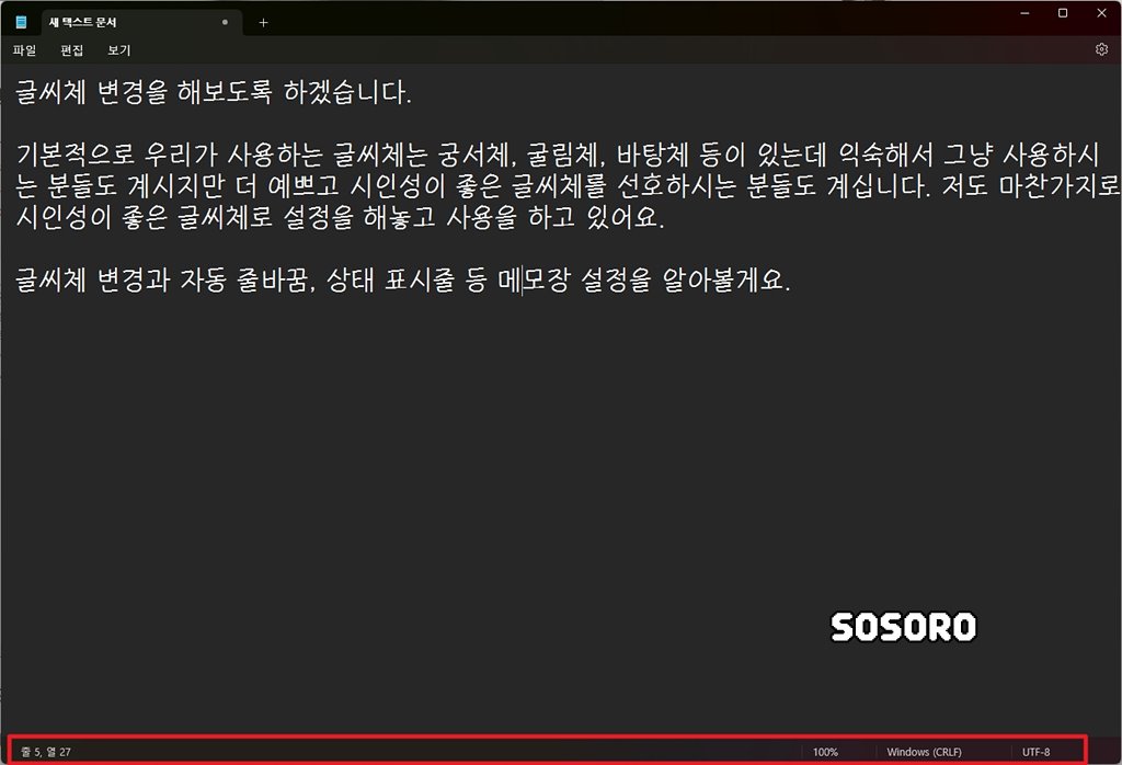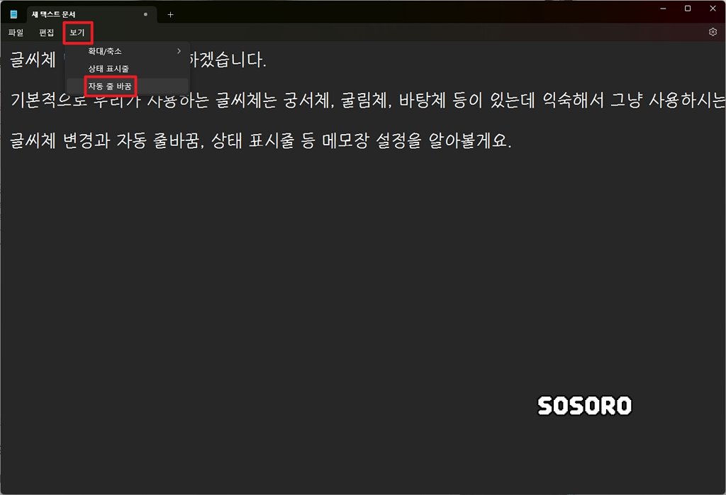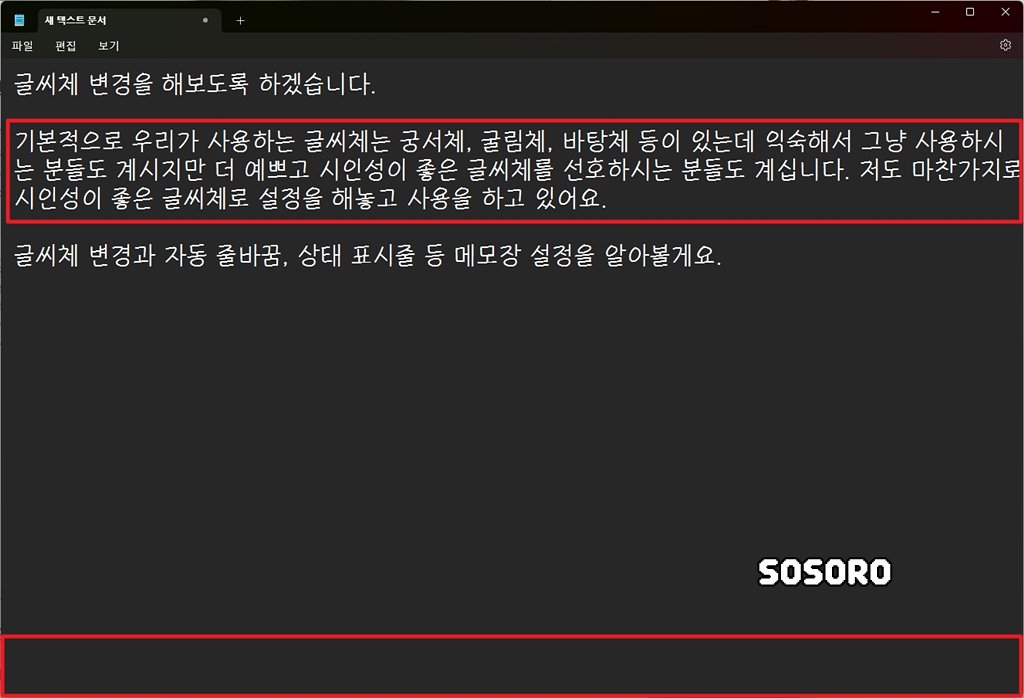 안녕하세요. 소소로입니다. 이번 포스팅은 메모장 자동 줄 바꿈, 글꼴 크기, 두께 등 설정하는 방법에 대해서 알아보려고 합니다.