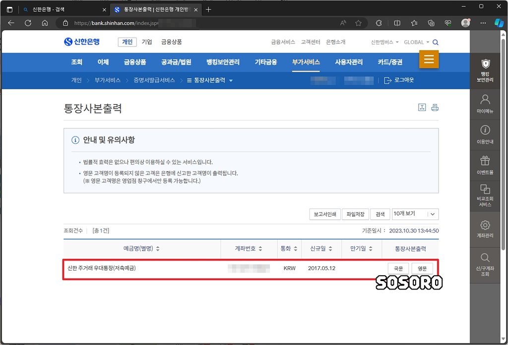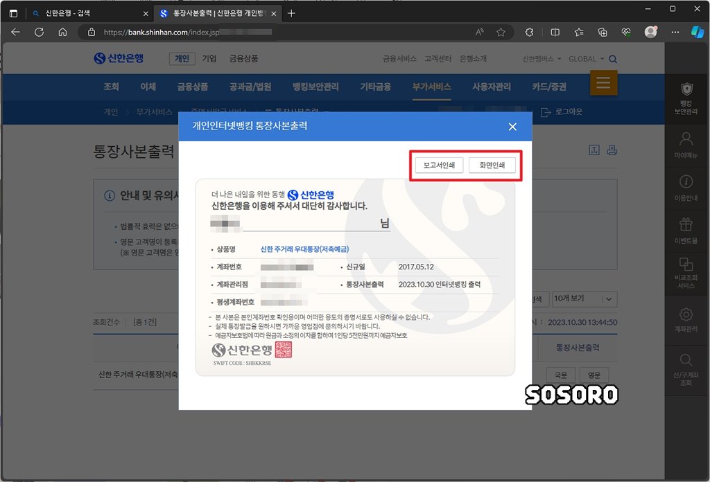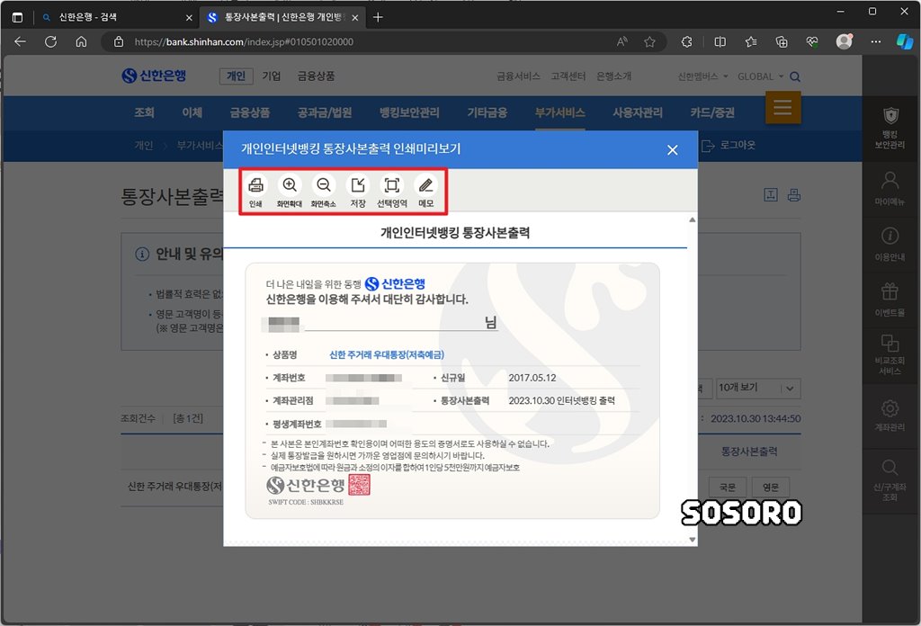 안녕하세요. 소소로입니다. 오늘은 신한은행 통장사본 인터넷 출력, 발급 방법(PDF 저장)에 대해서 알아보려고 합니다.