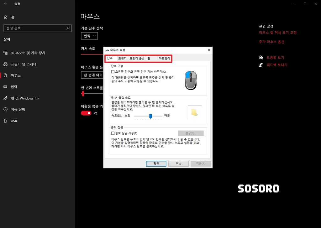 안녕하세요. 소소로입니다. 이번 포스팅은 윈도우10 마우스 감도, 포인터, 속도, 색상, 왼손잡이 설정 방법에 대해서 알아보려고 합니다.