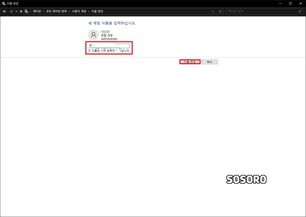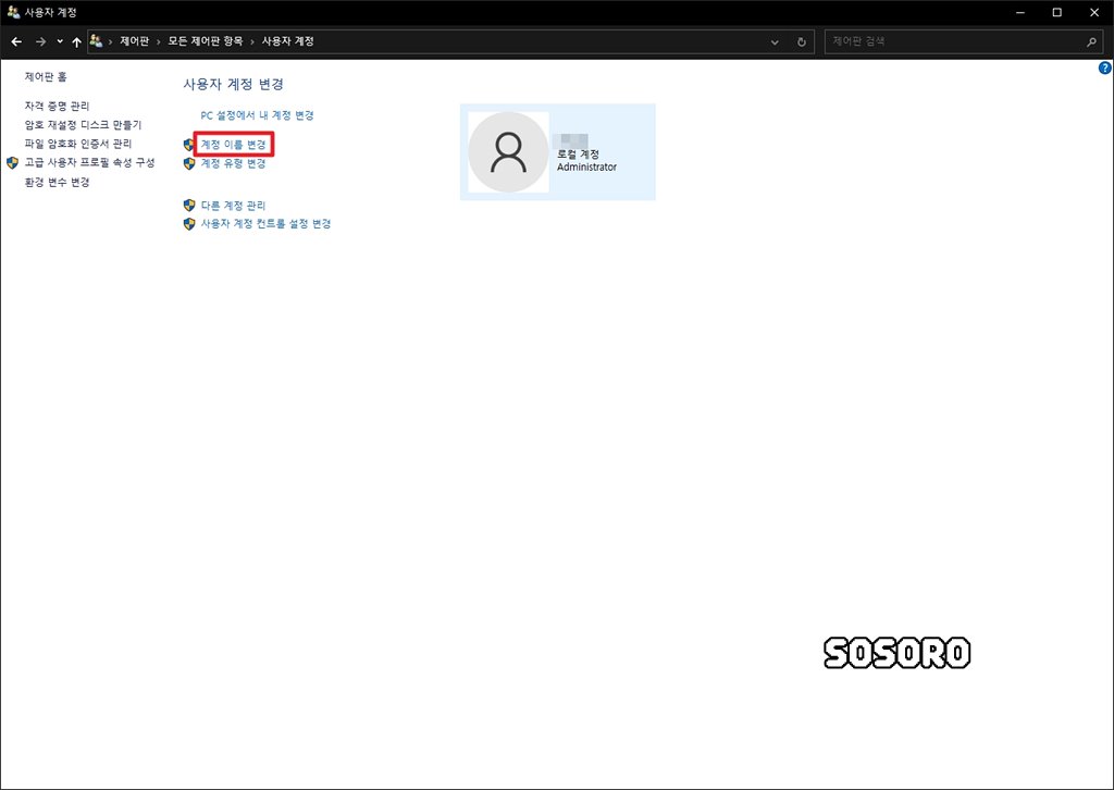 안녕하세요. 소소로입니다. 이번 포스팅은 윈도우10 사용자 계정 이름 변경하는 방법에 대해서 알아보도록 하겠습니다.