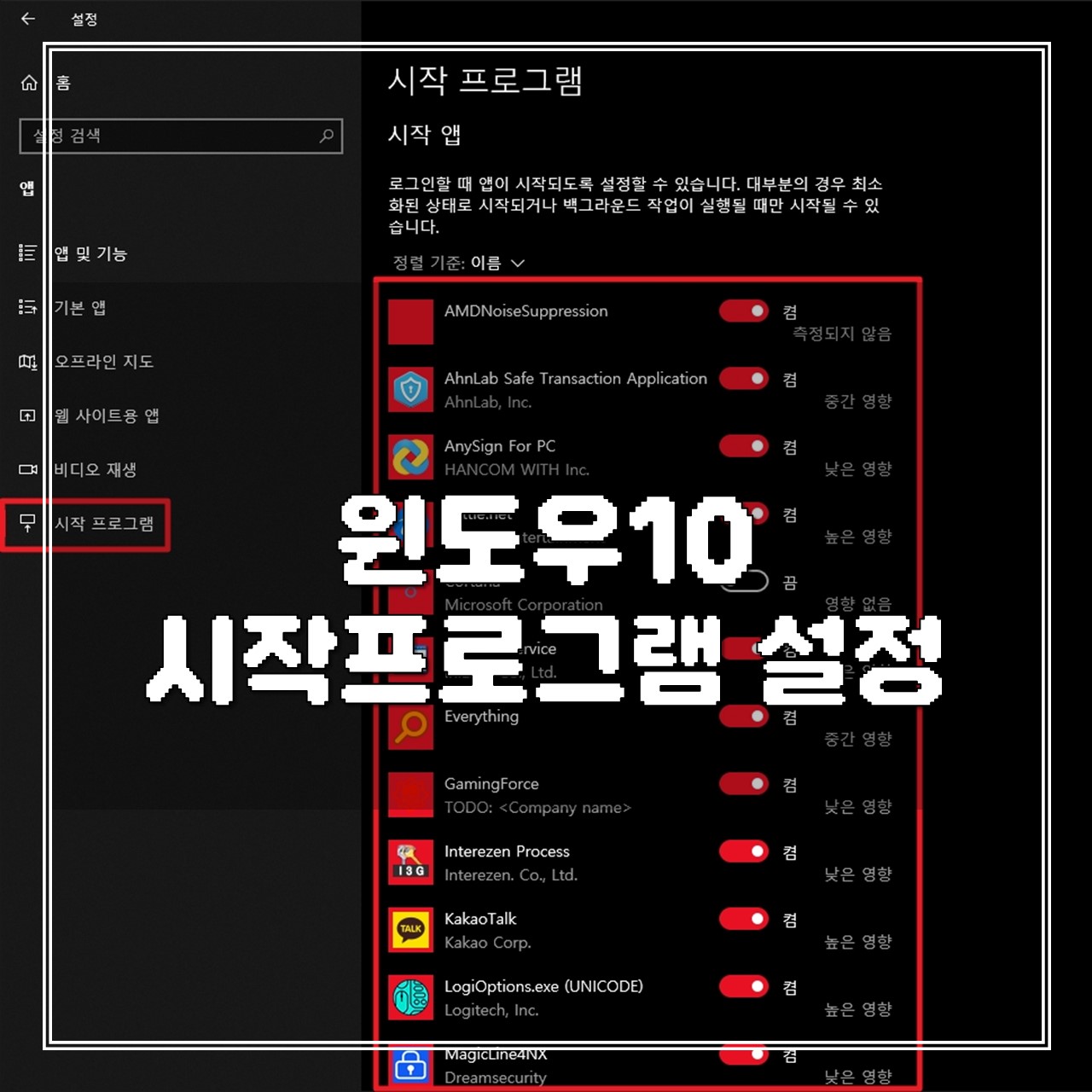 윈도우10 시작 프로그램, 시작 앱 설정, 정리하는 방법