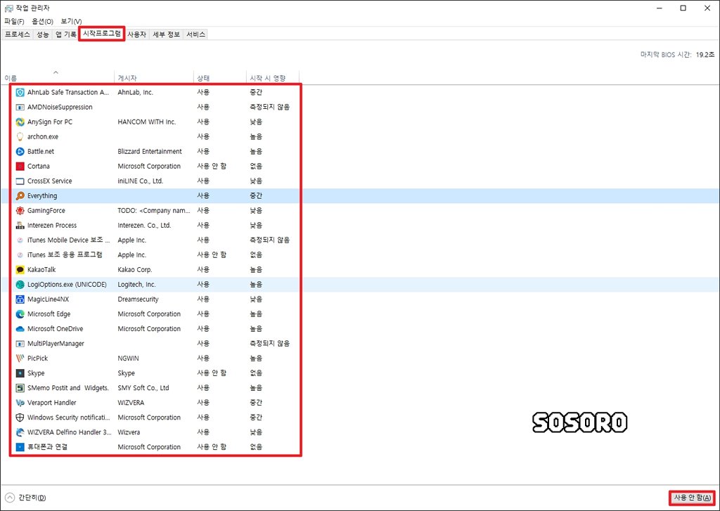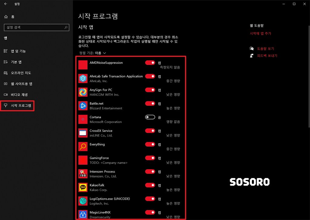 안녕하세요. 소소로입니다. 이번 포스팅은 윈도우10 시작 프로그램, 시작 앱 설정, 정리하는 방법에 대해서 알아보려고 합니다.