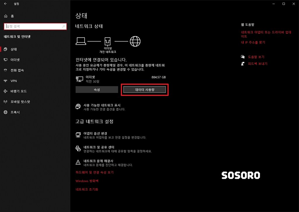 안녕하세요. 소소로입니다. 이번 포스팅은 윈도우10 인터넷 사용량, 데이터 확인 방법에 대해서 알아보려고 합니다.