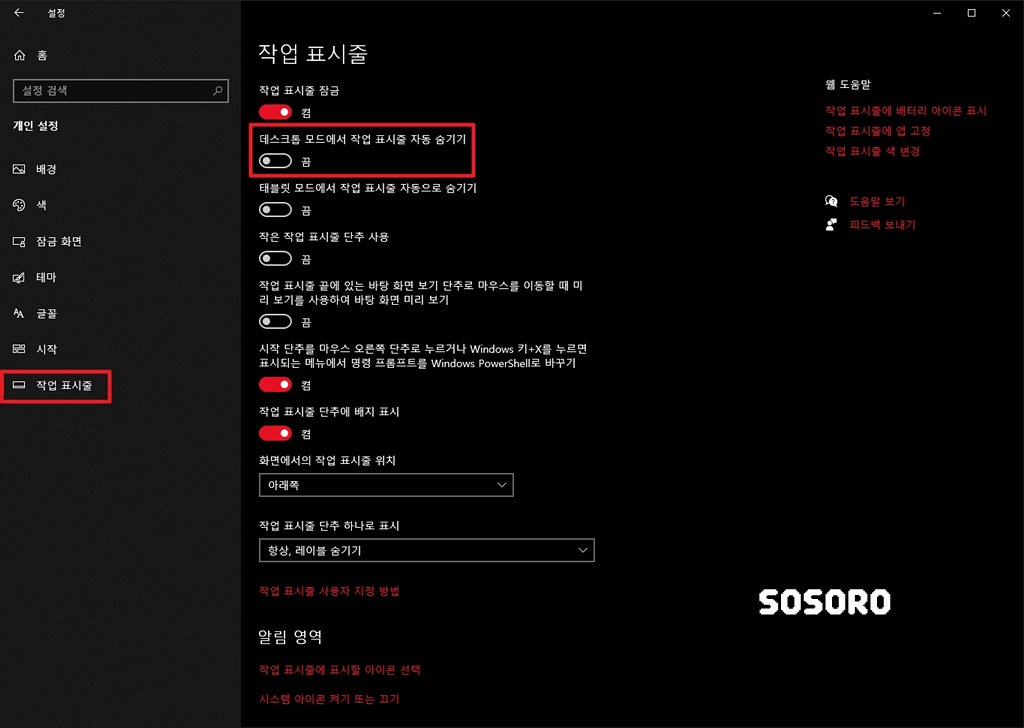 안녕하세요. 소소로입니다. 이번 포스팅은 윈도우10 작업 표시줄 숨기는 방법에 대해서 알아보려고 합니다.