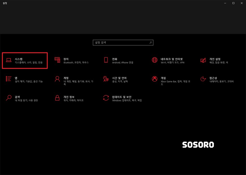 윈도우 설정으로 들어가셔서 [시스템] 항목을 클릭해 주세요.