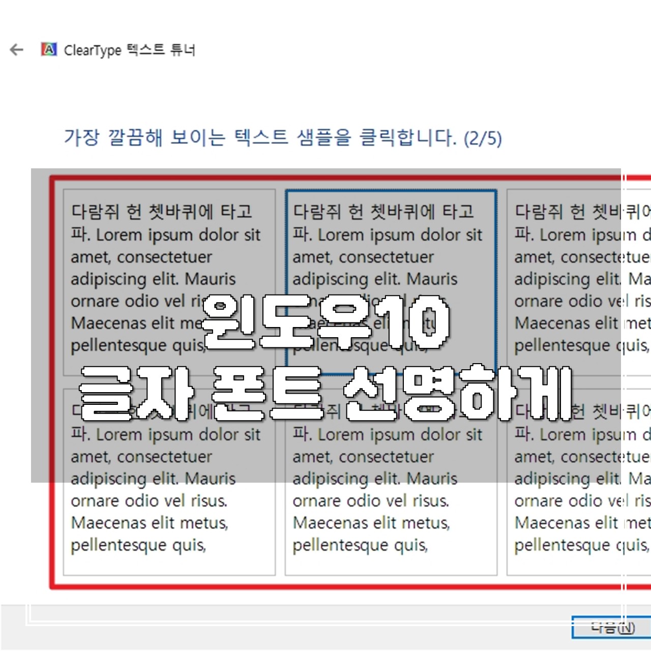 여러 가지 문구가 나오면서 글자의 선명도나 굵기 등 여러 가지 옵션이 나옵니다. 본인 눈에 편해야 하기 때문에 가장 편한 글꼴로 선택을 해 주시고 [다음]을 클릭해 주시면 됩니다.