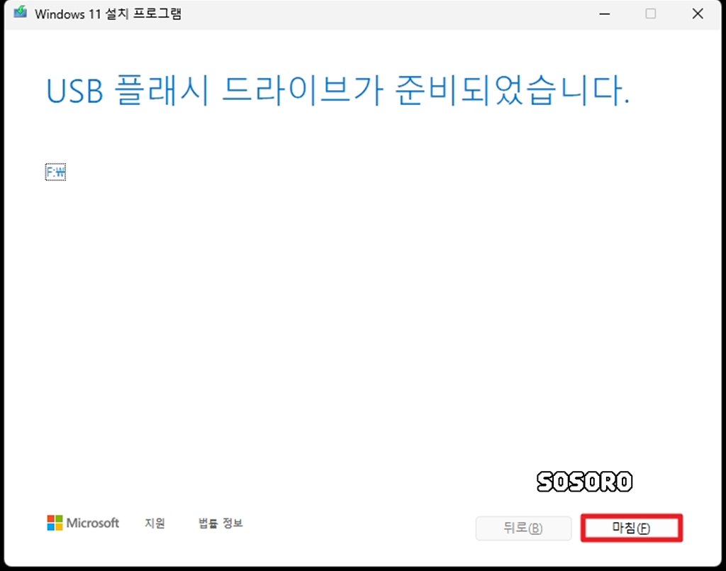윈도우11 설치 USB 만들기 마무리