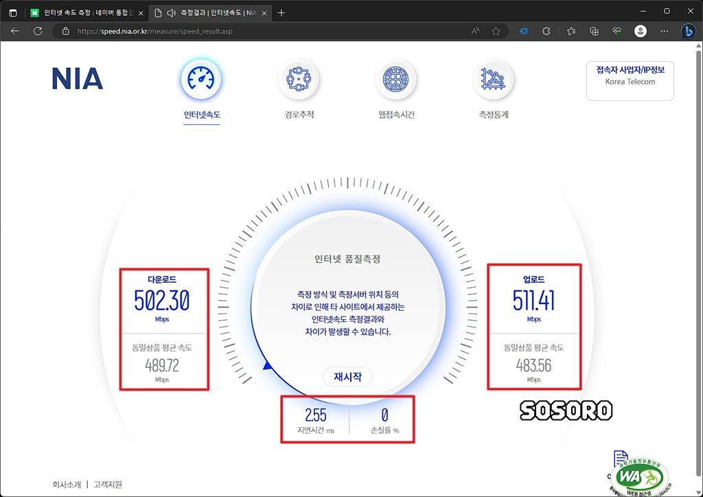 저는 니아 사이트에서 항상 측정을 하고 있습니다. 니아 인터넷 품질 측정 사이트를 클릭해 주세요.