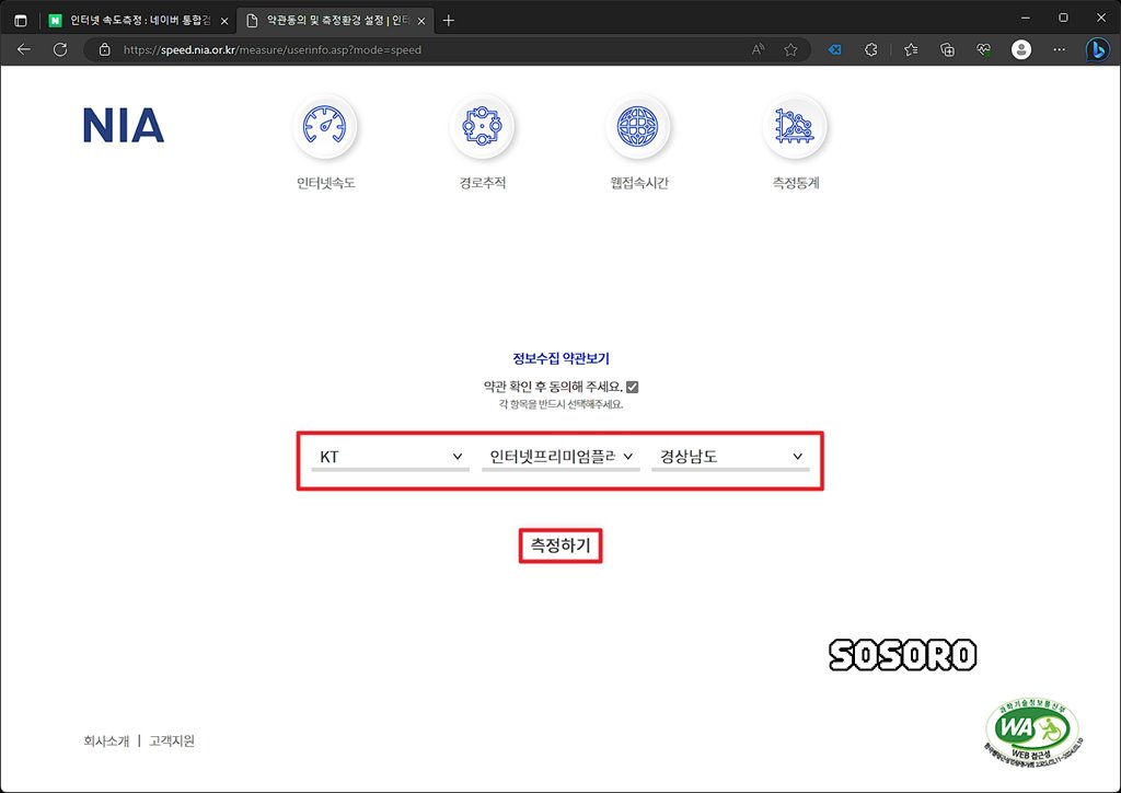 NIA 한국지능정보사회진흥원에서 제공하는 인터넷속도 품질측정 시스템