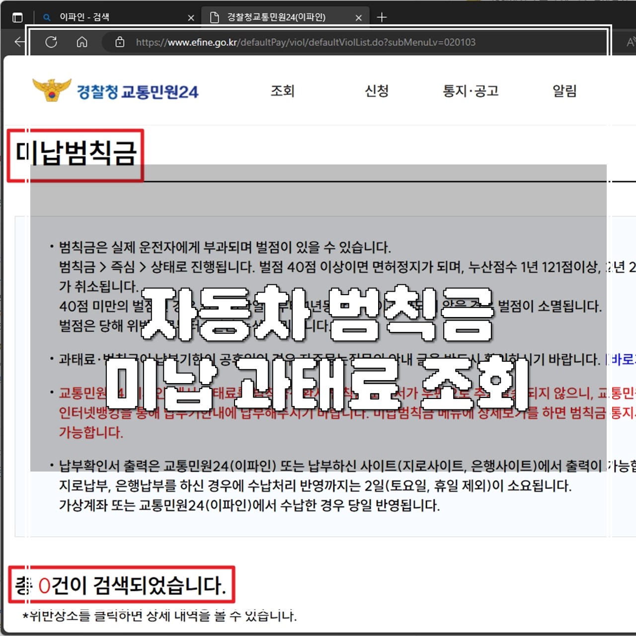 나도 모르게 범칙금이 생기고, 미납된 과태료가 있을 수도 있습니다. 잊어버렸던 것들이 간혹 생길 수도 있는데요.