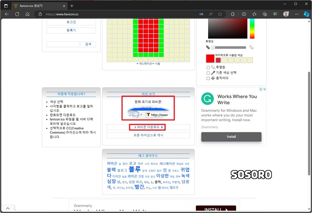 마지막으로 아래에 있는 [파비콘 다운로드]를 클릭하셔서 파일을 받아 주시면 됩니다.